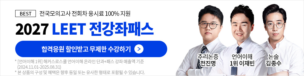 1. 상품 구매 후 마이클래스> 프리패스 > 2027 LEET BIG 3·4·5 선택형 패스에서 수강하실 수 있습니다.